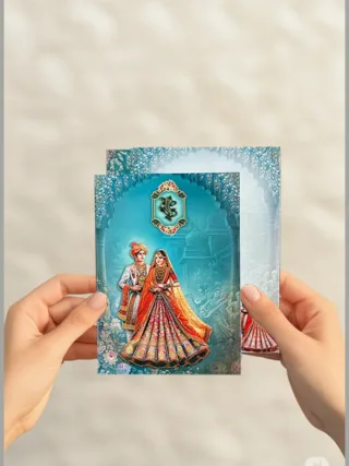 Celebrate your big day with this beautifully crafted traditional Indian Kankotri (wedding card). Measuring 7×7 inches, this invitation card features intricate ethnic design elements, ideal for Gujarati, Rajasthani, or traditional Hindu weddings.