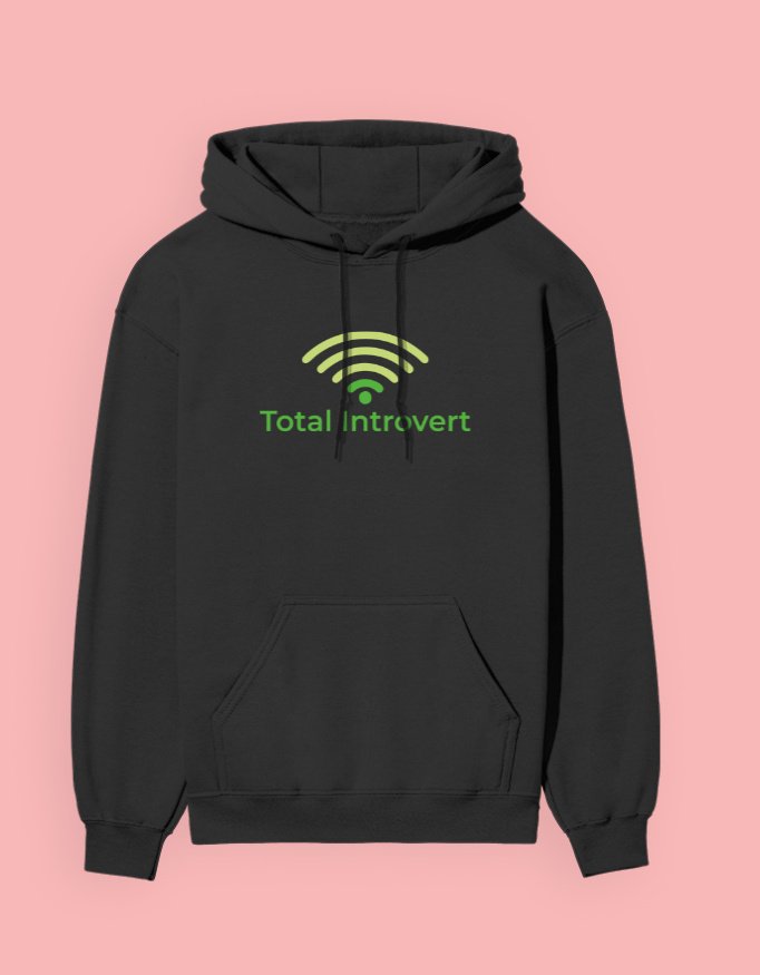 - Front-only print: clean lime-green WiFi icon + “Total Introvert” text that glows just enough to be noticed, but subtle enough for your comfort zone.