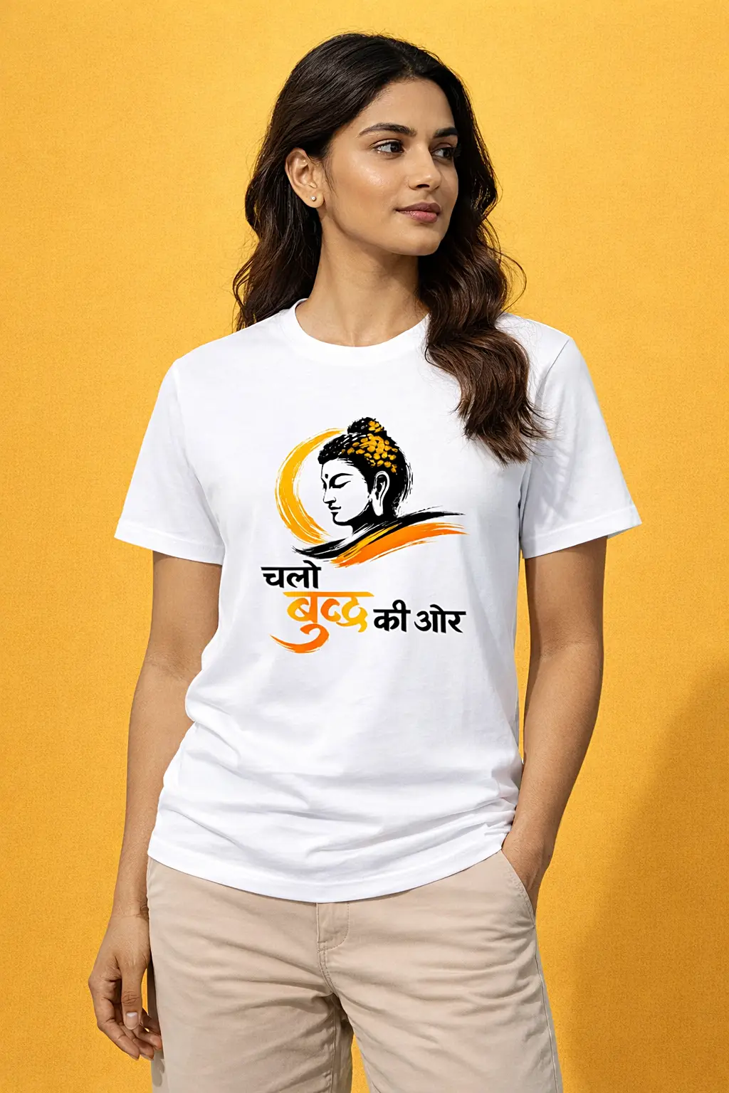 Chalo Buddha Ki Aur T-Shirt – Buddha Quote Spiritual, Unisex Standard Crew T-Shirt